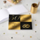 Elegant gold glitter numbers and wedding rings over black and gold background