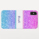 Pink and blue faux glitter background with faux diamonds accents and customisable monogram.