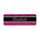 A hot pink / purple glitter that sparkles on the bottom, and bright pink / purple with a black twirl / swirl design background pattern on the top. The centre is left for personalisation / personalise surrounded with white diamond rhinestones (faux). (PHOTO PRINT)