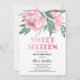 Glitter Pink Peony Floral Sweeet 16th Birthday Invitation