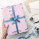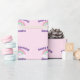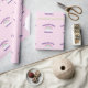 This cute, custom gift wrapping paper features a soft toned, pink colored background. A faux, pastel colored glitter style rainbow with clouds is tiled across the wrapping paper. The phrase "Happy Birthday" is printed above the rainbow in a whimsical purple font with a sample name printed below the rainbow in a matching purple font. You can personalize both the message and name to include your own name and custom message or quote.