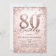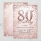 Glitter Rose Bold Calligraphy Modern 80th Birthday Invitation