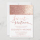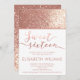 Glitter rose gold chic calligraphy sweet 16 birthday party invitation design.