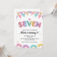 Glitter SEVEN Girly Rainbow Sequin 7th Birthday Invitation