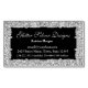 Magnetic Business cards are great for introducing your product or service. Impress prospective clients with this elegant silver glitter theme. The glitter look background has a silver grey edged black banner and would suit a variety of industries and professions. Customise text with your information. Design is available in gold and other colours