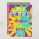 Invite your birthday guests in style with this awesome colourful slime inspired birthday invitation. It has a colourful design that includes glitter splatters and colours of hot pink, purple, neon green, yellow and neon blue. The invitation also features your child's name and age on the front. On the back you can customise it with your party details, as well as add any extra information.