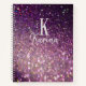 Simple unique modern purple faux silver glitter sparkling monogrammed and name personalised recipe cookbook notebook.