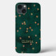 Multicolored simulated faux glitter stars design on grunge watercolor style pattern in shades of dark forest green. Personalise with your name or initials in matching lettering.