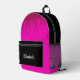 Elevate your style with this stunning Rose Gold Glitter Personalised Backpack. Featuring a captivating design of dripping glitter strawberries, this backpack is perfect for the girly and elegant woman. Customise it with your name for a personalised touch. The wash script font adds a touch of sophistication, while the black background provides a sleek and modern look. This trendy backpack is a must-have for any fashion-forward individual.