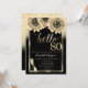 Glitter,Sunflowers,Glass Black 80th Birthday Party Invitation