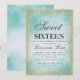 Glitter Sweet 16 Turquoise watercolor Birthday Invitation