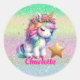 Glitter unicorn magical star classic round sticker