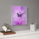 Square Wall Clock - Energy Enhanced by Anna Rosa: === Mystical Gorgeous Abstract Watercolor Celestial Textures Sounded by Magenta Pink Purple Lavender Faux Glitter Topped with an elaborate white meditative Mandala with a Gold gilded and Blue Turquoise Magenta and Pink Butterfly.