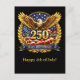 This striking patriotic design celebrates the 250th Anniversary of the United States of America with a luxurious, glitter-enhanced emblem. At the center, a majestic bald eagle spreads radiant, glittering golden wings, symbolizing strength, freedom, and national pride. The eagle rises before a deep navy star-filled field, while a flowing American flag adds dynamic movement below. Bold metallic gold numerals “250” shimmer with glitter accents, flanked by the historic dates 1776 and 2026. An elegant gold laurel wreath encircles the design, and a rich blue ribbon banner at the base reads “YEARS ANNIVERSARY,” completing a formal, celebratory composition perfect for commemorating America’s semiquincentennial. Glitter is simulated in the design.
