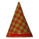 Glittering golden and red diamond pattern Birthday Party Hat. The text can be personalised for other party events.
