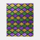 A vibrant Mardi Gras poster with shiny green, purple, and golden glittering diamonds.