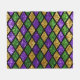Shiny green, purple and golden glittering paillettes diamonds background pattern fabric with empty space for copy, room for text. Mardi Gras holiday poster decor.