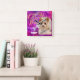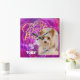 Glittering Pet Dog Photo Mangenta Square Wall Clock