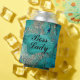 An abstract painting with shades of turquoise, aqua with gold glitter sprinkles where in the middle are aqua green blue paint brush strokes where the words Boss Lady are written where you can keep as is or personalise it with a name, logo or letter. Whimsical abstract glittery vibes.
