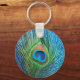 Glittery Blue Peacock Feather Still Life Key Ring