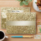 Glittery modern elegant gold stripe address rsvp design.