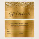 Modern girly glam design for your small business card size gift certificates.