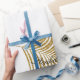 Glittery Gold Leaf Custom Name Birthday Holiday Wrapping Paper