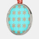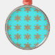 Glittery Gold Snowflakes Patterns Turquoise Blue Metal Tree Decoration