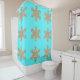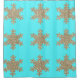 Glittery Gold Snowflakes Patterns Turquoise Blue Shower Curtain