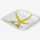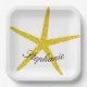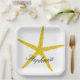 Glittery Gold Starfish Pattern Custom Name Elegant Paper Plate