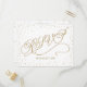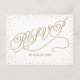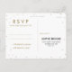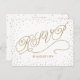 Tiny, glittery gold stars sparkle in confetti clouds around the edge of this beautiful gold and white response postcard, with a gold glitter effect script reading, "RSVP". Fancy, chic and enchanting all at once. Perfect for a fabulous affair. Original artwork by Colleen Michele. Please note, there is not a real gold glitter or gold leaf effect on the stars and script; no actual glitter, gold leaf or metallic ink will be used in this invitation.