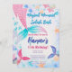 Make a splash with this dazzling magical mermaid birthday invitation! The design showcases beautiful mermaid tails in shades of pink, purple, and teal, set against a dreamy watercolor background. Glittery gold accents add a touch of sparkle and magic to the scene. Perfect for celebrating your child's special day, this invitation is both elegant and fun, capturing the essence of a magical underwater celebration. Personalise the details and create an invitation that's as unique as your daughter!