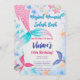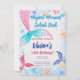 Celebrate your little mermaid's birthday with this stunning invitation! The design features beautiful watercolor mermaid tails in shades of pink, teal, and purple, creating a magical undersea scene. Gold glitter accents add a touch of sparkle and elegance, perfectly complementing the soft, dreamy colour palette. The unique scalloped border adds a touch of whimsy, making this invitation truly special. It's the perfect way to invite your guests to a memorable underwater birthday celebration!