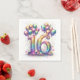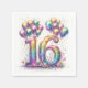 Glittery Iridescent Number 16 with Balloons and Confetti Napkins