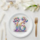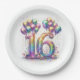 Glittery Number 16 with Balloons and Confetti Paper Plate