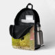 On this stylish back pack is a watercolor ballerina posing on a flowery pastel backdrop where on the front pocket is lotus petals and glittery edging for extra flair glam where you can personalise it. Girly whimsical dancer theme