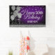 Fun banner sign for indoors or out, featuring some glam metallic balloons and glittery confetti on a rich textured deep purple background for your personalised birthday banner.
