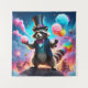 Step into a whimsical carnival with this magical scene! A giant, glittery racoon, adorned with a top hat and monocle, rides a magnificent mechanical dragon through a sky filled with floating, luminous cotton candy clouds. The racoon dazzles with its skilful juggling of glowing orbs, while the dragon breathes a vibrant, rainbow-coloured fire that transforms into sparkling fireworks. This enchanting artwork combines fantasy, fun, and festive charm, making it perfect for fans of magical adventures and whimsical celebrations.