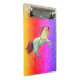 A rainbow shaded mythical unicorn where you can customise it on a rainbow backdrop with glittery stars and gold glitter edging on the top for extra magic. Whimsical dreamy vibes.