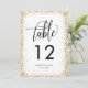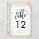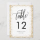 This trendy wedding reception table number features a shimmery border of faux gold glitter and can be personalised with your wedding monogram and date!