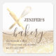 Glittery rolling pin & whisk chef script bakery square sticker