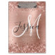 Glittery Rose Gold Foil Black and White Monogram Clipboard