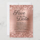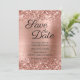 Faux rose gold glitter and pink blush and rose gold ombre foil for your wedding save the date information.