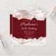 The top and bottom border of this invite features decorative faux sparkly rose gold glitter and white agate digital art graphics over solid dark burgundy red.
