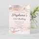 The top and bottom border of this invite features decorative faux sparkly rose gold glitter and white agate digital art graphics over a pale pastel blush pink ombre.