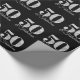 A 50 & Fabulous typography design with silvery grey glitter and foil on black colour wrapping paper.