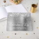 Girly faux sparkly grey glitter on the top and bottom edge, over a faux silvery grey brushed metal or stainless steel style ombre foil.