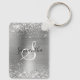 Glittery Silver Foil Elegant Monogrammed Key Ring