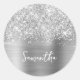 Glittery Silver Glam Name Classic Round Sticker