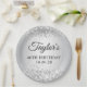 Glittery Silver Gradient 40th Birthday Paper Plate